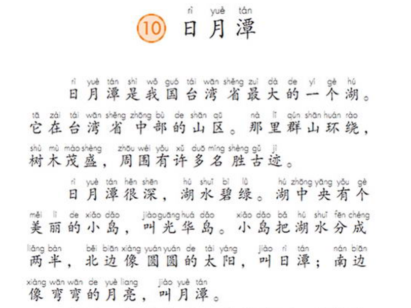 另有一些表述,其实已经过时或不准确。例如人教版小学二年级《语文》上册的一课《日月潭》: