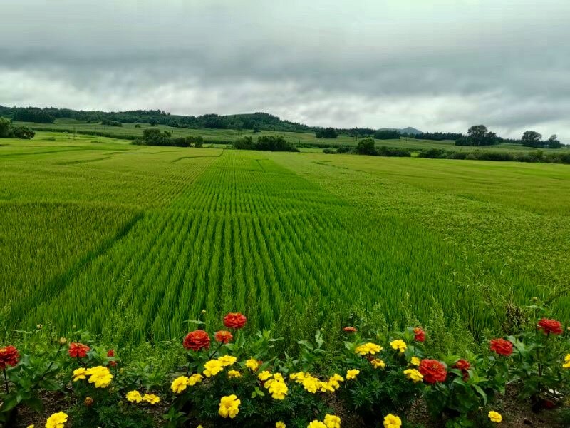 满眼都是绿的。东北黑土地的成分是寒冷气候下长时间积存的植物腐殖质,是最肥沃的土壤。捏一下就知道它松软又饱含水份,确实可以被形容成浸透了油的泥土。