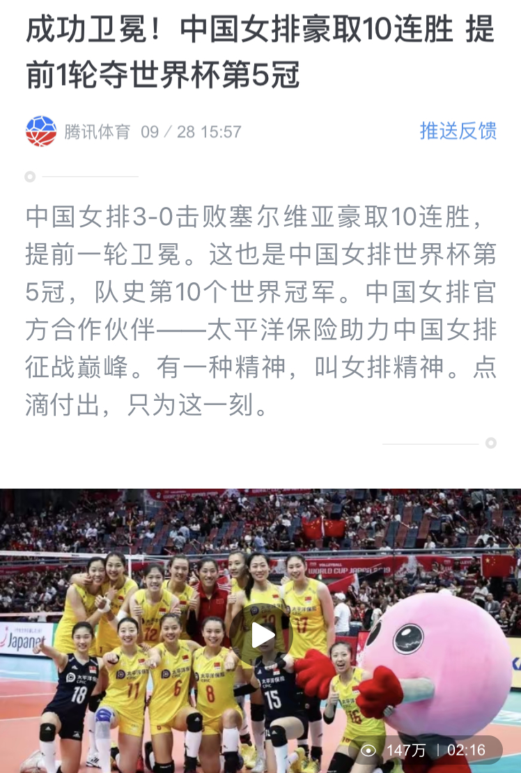 中国女排提前一轮拿到了世界杯冠军。其实,这个结果在中国女排又赢下了关键战,3:0胜美国队之后,就已经不可逆转了。原来以为这是场艰苦的拉锯战,双方实力应该差不多,可能美国队还强点,但过程出乎意料,美国队几乎没有什么抵抗就缴枪了。