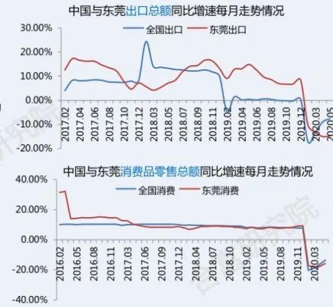国家统计局的数据显示,2020年1至5月,东莞的投资、消费和出口同比分别为0.5%,-15.7%,-14.8%,东莞的经济走势整体弱于全国平均水平。