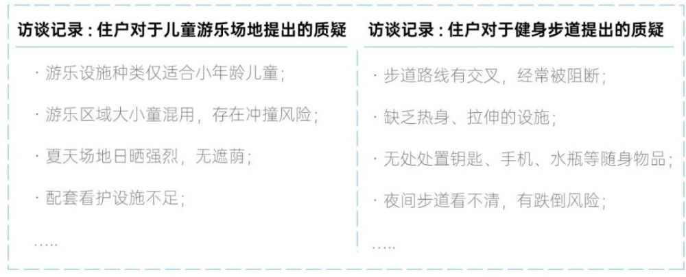 对于这个结果,调研人员也很意外,经过更深入的入户访谈,他们发现,居民的反常选择其实是因为,在实际使用这些设施的过程中存在很多消极体验。他们反映,很多社区的活动设施配置简单粗暴,专业度、安全性、吸引力、日常维护等方面都不能达到预期。在进一步的实地调研中,研究团队也发现,虽然很多社区都配置了儿童组合滑梯、户外健身器械、棋牌桌等活动设施,但维护不佳、质量参差,使用率很低。