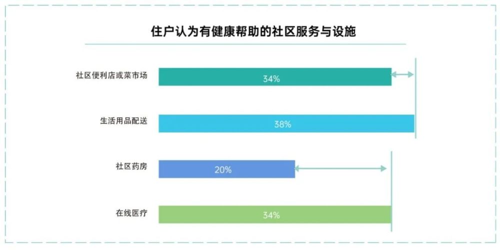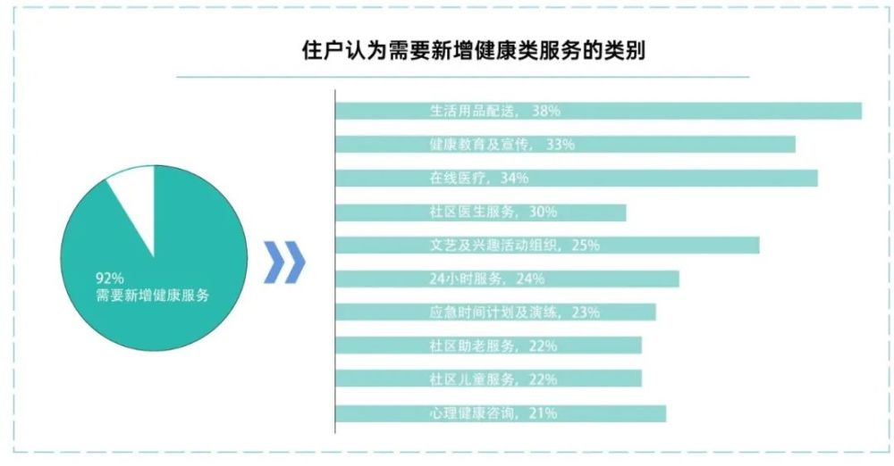 根据调研,92%的住户认为现有社区服务过于基础,需要新增健康类服务,具体的服务类型和需求很多元。见下图。