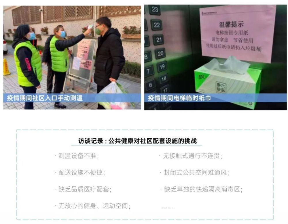 例如,社区入口物管人员手持测温,社区入口的临时快递架,电梯间放置的纸巾盒等。这些临时性举措着眼于“解决”而非“预防”,不仅人力成本高、难持续,也无法避免健康“死角”的风险。