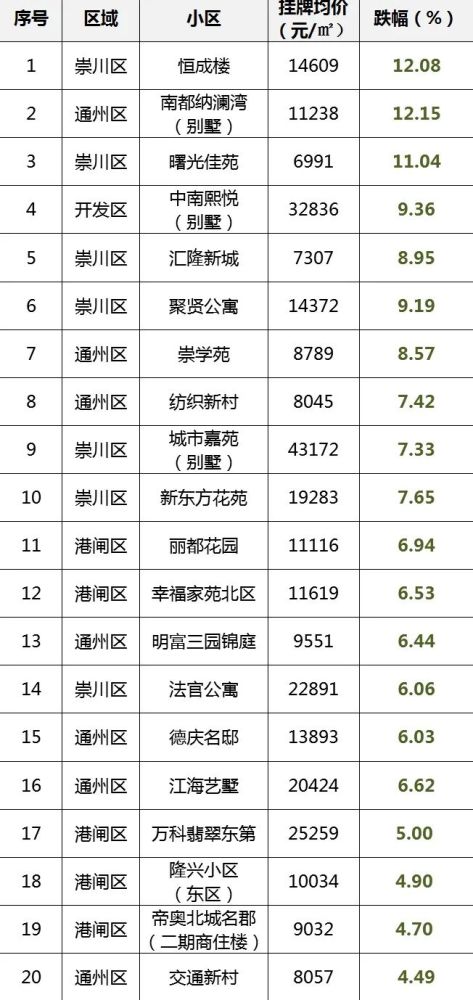 快看!南通房价跌的最厉害的20个小区曝光!买到就亏了!房产