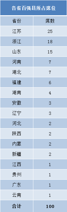 从数量上看,河南占百强县7席,相比江苏、浙江、山东三省分别占百强县25席、18席和15席且三省百强县总数占据百强县过半席位而言,可谓望尘莫及,但相比湖北7席、福建6席、湖南4席、安徽3席、辽宁3席、河北2席、陕西2席、内蒙古2席、新疆2席、江西1席、贵州1席、广东1席、云南1席的占位,河南的占位还是比较靠前的。