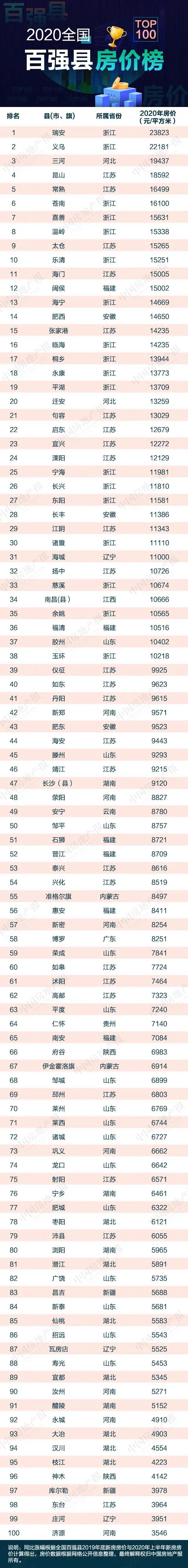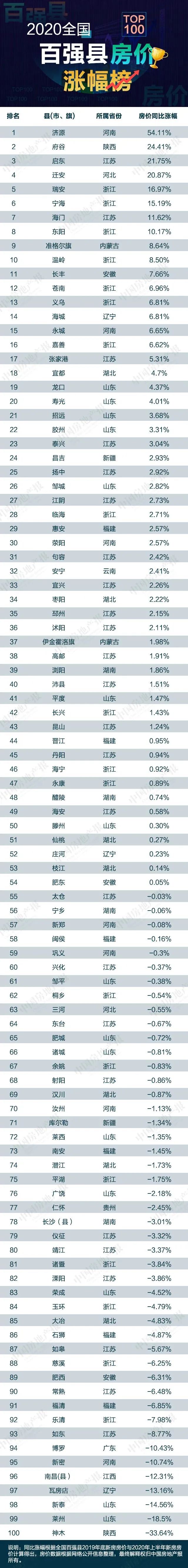 8月5日,中国房地产报记者以《2020全国百强县榜单》为基础,编制了《2020年全国百强县房价榜》和《2020年全国百强县房价涨幅榜》。