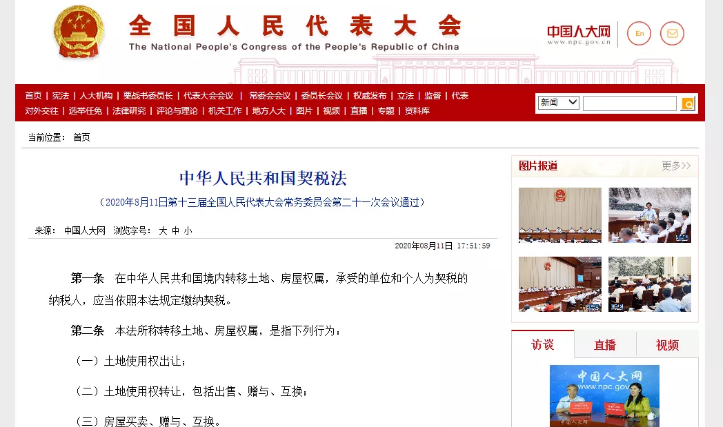 8月11日,《中华人民共和国契税法》全文发布,并自2021年9月1日起实施。
