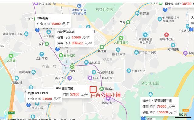 百合公园小镇前身是金稻田片区旧改的第三期,一二期是布吉比较有名的小区,万科红和信义金御半山。