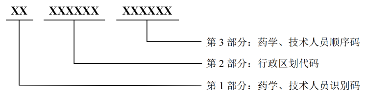 第3部分:医保定点医疗机构药学、技术人员顺序码,对同一市级行政区(市、地区、自治州、盟)下的医保定点医疗机构药学、技术人员赋予的顺序码,用6位阿拉伯数字表示。