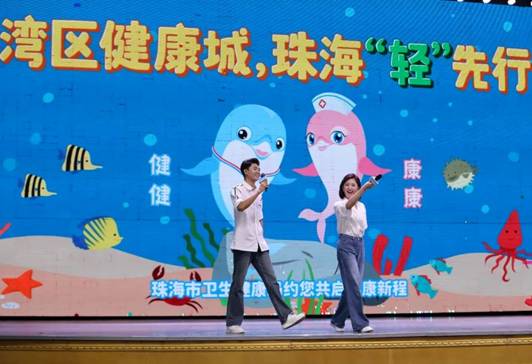 在现场观众期待的目光中,珠海市卫生健康局正式发布珠海健康IP一吉祥物“健健”“康康”。两个活泼可爱的健康守护精灵,是以珠海城市吉祥物“中华白海豚”为原型,整体设计体现了人与自然和谐统一、绿色生态健康的理念。