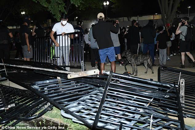 据《每日邮报》称,全美有30个城市爆发了示威活动,白宫外的活动只是其中的一部分,从图片可以看出,愤怒的人群已经不再仅仅是口头抗议,他们就是要越过设置的路障,进入核心地带。他们和特勤局的特工们,就如同拔河一样,互相拉扯着铁栅栏。