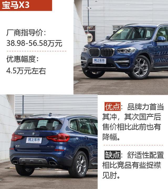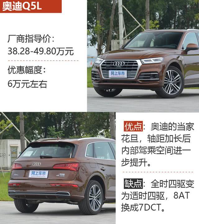 总结:至此,已经为您推荐了3款40万元左右的SUV车型,怎么选呢?追求综合实力的消费者,可以选择奥迪Q5L,其各方面表现都非常出众,并且市场保有量很大;倾向于操控与驾驶乐趣的消费者,可以选择宝马X3,绝对不会令人失望;而选择凯迪拉克XT5的消费者,想必大多都是钟情于美式豪华。