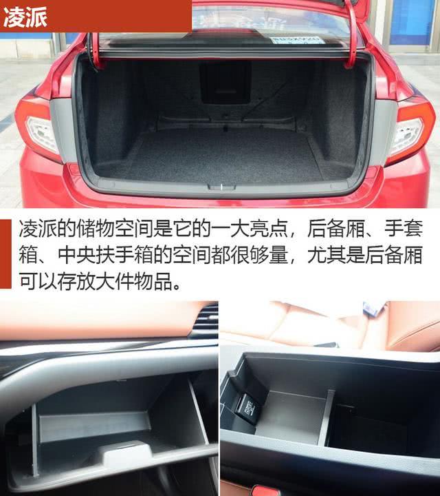 凌派的外观设计采用本田家族式的风格,整体造型偏向运动风格,并且内饰的设计,非常实用,功能分区非常合理,并且车内空间以及座椅舒适度都是它的长处,可以给乘客带来良好的乘坐感受。