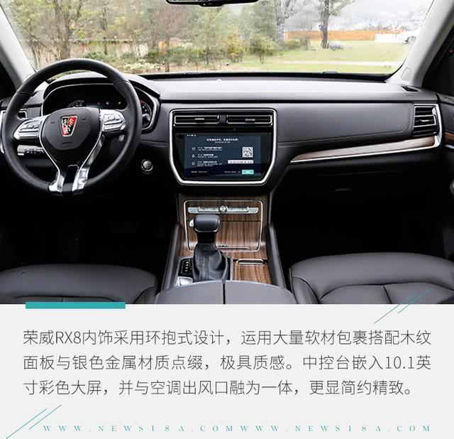 软皮包裹+木纹内饰板,这样的搭配看起来有一点点美式SUV的感觉,不过中间的大尺寸屏幕搭配智能车载系统又特别的中国范儿,荣威RX8内饰整体表现比较出色。