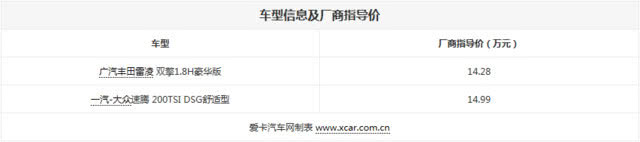 实力派之争 丰田雷凌双擎对比大众速腾汽车