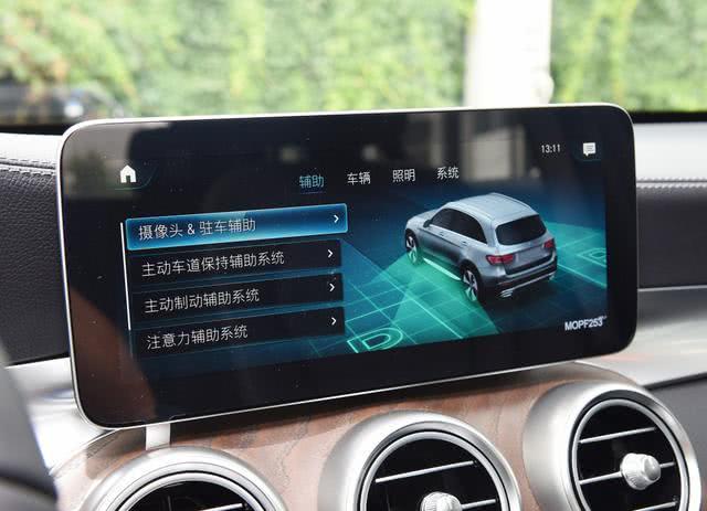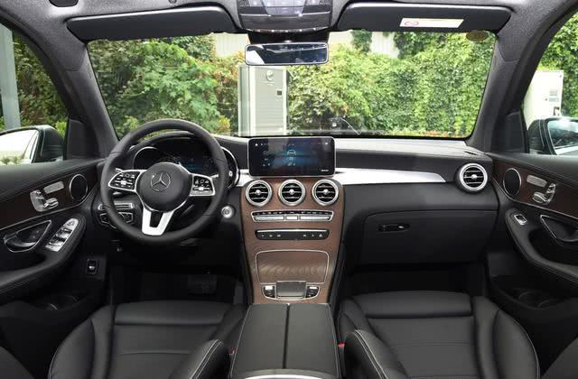 新款GLC L中控台依旧维持了老款车型的造型,仅局部进行了调整。三辐式多功能方向盘按键区域采用了新的设计;中控台上方大尺寸显示屏横向尺寸更长,纵向更短;新增12.3英寸全液晶仪表盘,并运用了大量的亮黑色和木质饰板修饰。此外,新车搭载升级后的MBUX NTG6.0人机交互系统,可进行语音控制、实景穿越导航等操作。