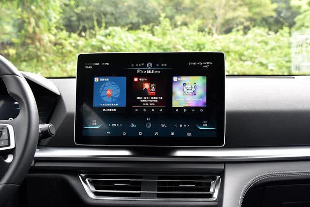 内饰通过选材的变化和线条的勾勒来营造时尚感,中控台各功能区划分清晰,立体感也较为凸出。12.3英寸的中控屏首款搭载GKUI 19系统,这套系统涵盖了语音交互、蓝牙、车载WiFi等常规功能,还自带多款第三方App,如高德地图、百度地图、QQ音乐等,后期还可以通过OTA来升级更新更多第三方App。除了丰富的功能外,屏幕的响应速度也很快。