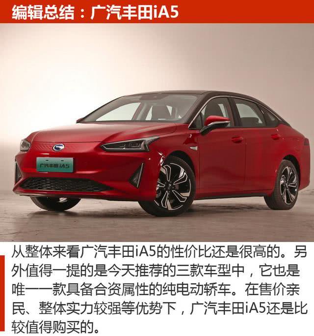 总结:通过以上三款车型介绍,相信各位的心里都有一款最适合自己的车。如果你是一个比较追求用车舒适性与科技感并存的用户,那么广汽丰田iA5是性价比较高的车型;如果你是一个追求未来感科技感体验的用户,那么几何A能带来更加不同的用车体验;如果你是一个比较务实的追求日常用车的用户,那么比亚迪秦Pro EV也是比较不错的选择。