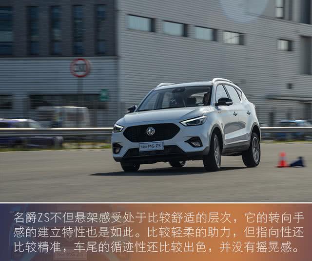 直线性能有一定的优势以外,并不意味着名爵ZS是一款更为运动的车型。从绕桩表现和颠簸路的呈现上,这是一款明显更偏向舒适性的车型。其一在绕桩上,名爵ZS的悬架整体风格是偏软的调教,前后段阻尼是比较强的一致性。虽然有一定的侧倾,但四个车轮依然保持了不错的抓地力。就好像车辆在告诉你:“我不适合做这个,但我依然能把你安全送回去”。其二在颠簸路面的感受上,名爵ZS的悬架体验是前软后硬,对抗较大颠簸的过滤非常彻底,车身也不会有过多的摇摆。所以综上,虽然听起来不是一台太运动的车型,但却有不错的质感,也是非常切合消费者的日常使用诉求,毕竟也不会有人开着它或者其它类似的车型去跑山。