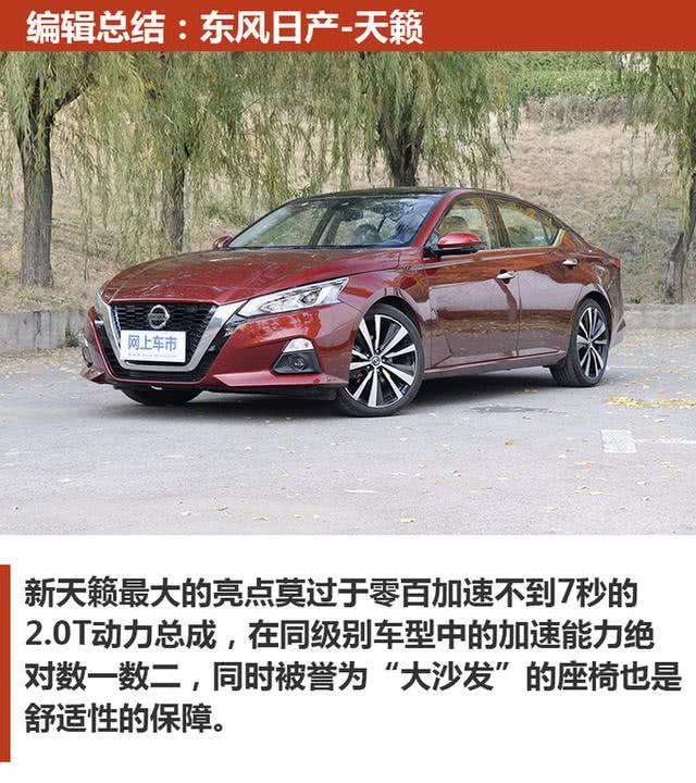 天籁的2.0T版本动力是最大的亮点,零百加速不到7秒的成绩在同级别中排在第一梯队,此外前后排座椅依旧非常柔软,对运动和舒适性均做到了兼顾。
