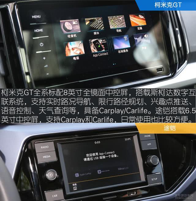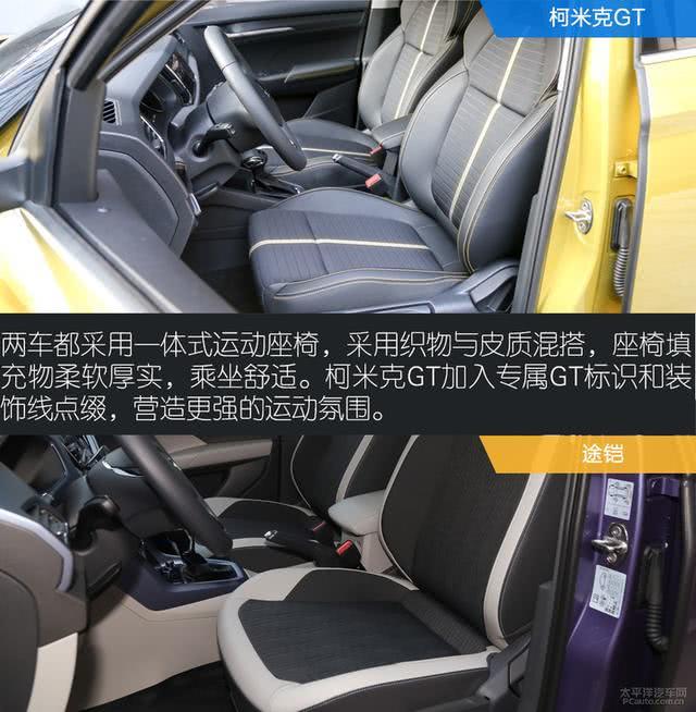 小结:两车的内饰布局都属于易上手的设计,柯米克GT在中控台、档杆、座椅等处都加入“GT”标识,给人一种专属定制的感觉。途铠中控面板与车身同色,对于年轻消费者来说也非常有吸引力。配置方面,柯米克GT多出8英寸全镜面中控屏、自动空调带PM2.5过滤装置和无钥匙启动,途铠则多出后座出风口,对于提升后排乘客的舒适性有一定帮助。