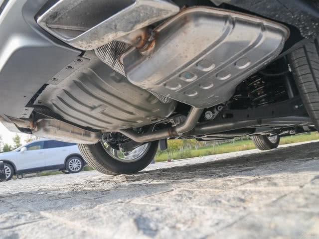 车尾造型没有车头那般霸气侧漏,给人一种敦实的感觉。两个四边形的排气管都是装饰件,真正双边共两出的排气隐藏在车底。