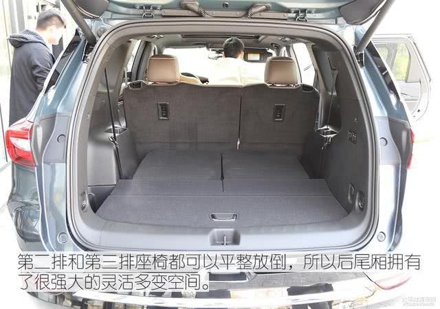 笔者认为侧面才是昂科旗的最大亮点所在,新车采用了大量富含层次感的硬朗线条勾勒,后两排车窗还单独做了黑化处理,在保持了别克一贯的稳重格调的前提,设计师还通过对细节的打磨,营造出不错的运动氛围。车身尺寸上,新车的长宽高分别为4981/1953/1732/mm,轴距为2863mm。轴距和车长都比低一级的产品要有不小的优势,在物理条件上就拥有更宽大的尺寸与空间。