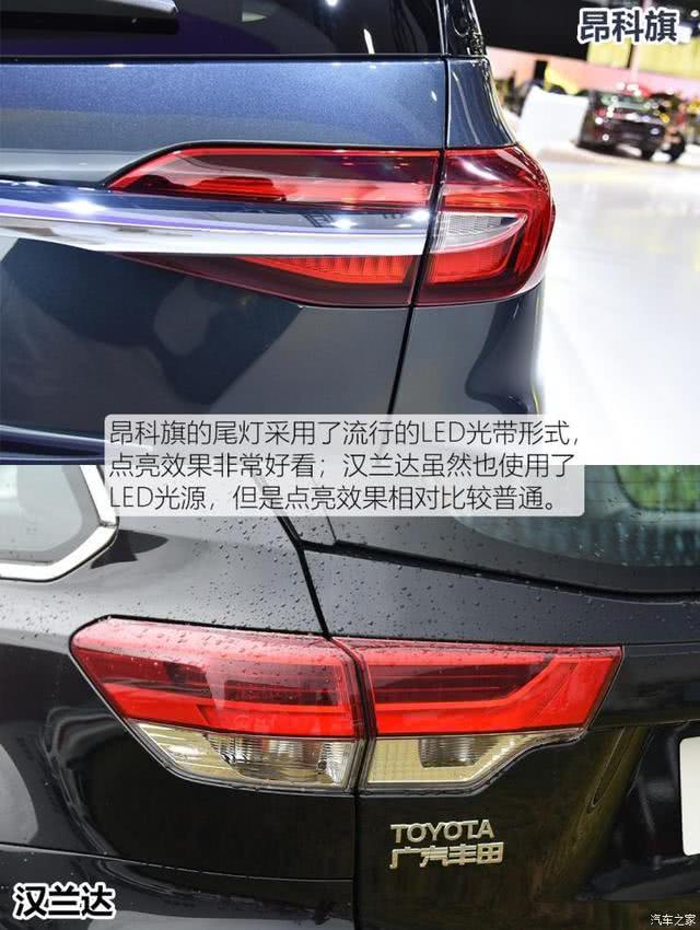 这里必须吐槽下汉兰达的大灯,这都快2020年了,汉兰达全系只有顶配车型配有LED近光灯,远光灯全系配卤素光源,不如学学自家雷凌,至少中配车型要配备吧。而昂科旗相当厚道,全系标配LED大灯,且分体式的造型也很有设计感。