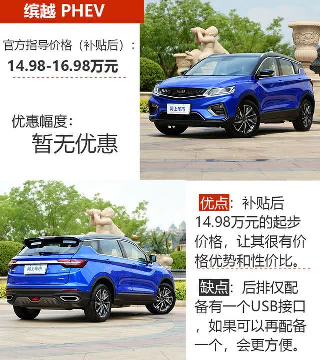 目前,在国内新能源汽车市场中的插混SUV领域中,大多数企业都在推出紧凑级插混SUV和中大型插混SUV车型,但对于插混小型SUV车型,还是比较少有车企涉足,而缤越PHEV的出现,让吉利成为其中为数不多的之一。同时其14.98-16.98万元的价格区间也相对降低了这一细分市场的购车门槛,为消费者带来一个更为经济实惠的选择。