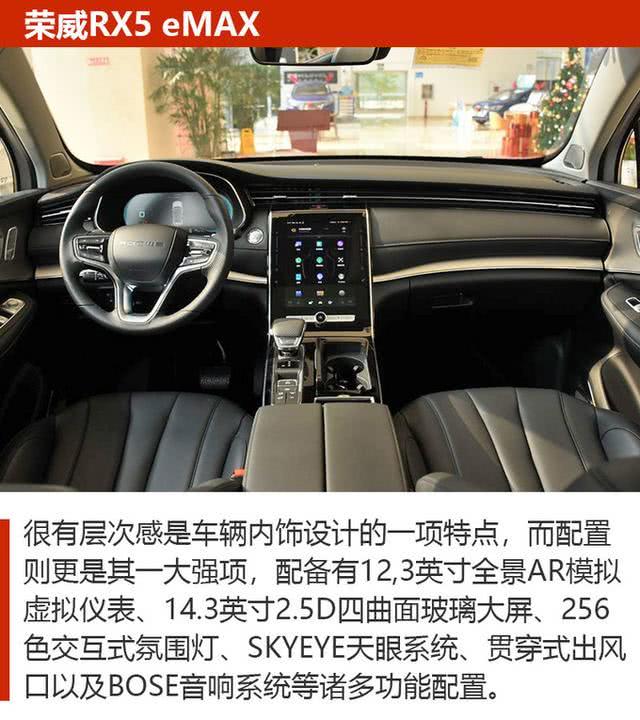 不难看出,在这个级别里,凭借着12.3英寸全景AR模式虚拟仪表、14.3英寸2.5D四曲面玻璃大屏、互联网汽车智能系统3.0-Pro、SKYEYE天眼系统以及256色交互式氛围灯等众多配置,RX5 eMAX为消费者打造出了很有时尚科技感的智能座舱,让科技在诸多细节上得意体现。因此对于注重车辆科技和安全配置的消费者来说,很对口味儿。