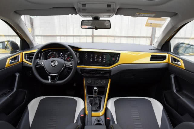 内饰部分,Polo 同样采用了大众家族设计风格,并采用与车身同色的内饰装饰,个性化比较到位。而中控台部分向驾驶员一侧倾斜,中高配车型搭载6.5英寸中控屏,而8英寸中控屏则是只有顶配车型可以选装配置,车厢用料和做工符合10万级合资车的水准。