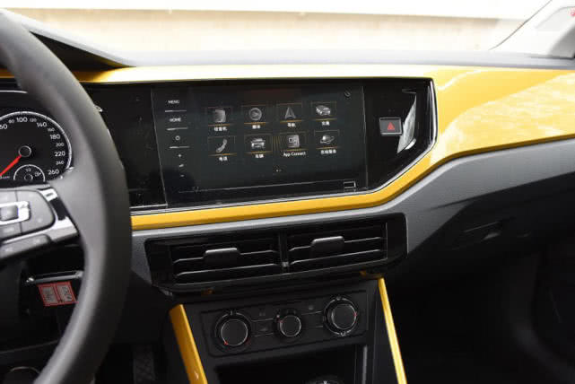内饰部分,Polo 同样采用了大众家族设计风格,并采用与车身同色的内饰装饰,个性化比较到位。而中控台部分向驾驶员一侧倾斜,中高配车型搭载6.5英寸中控屏,而8英寸中控屏则是只有顶配车型可以选装配置,车厢用料和做工符合10万级合资车的水准。