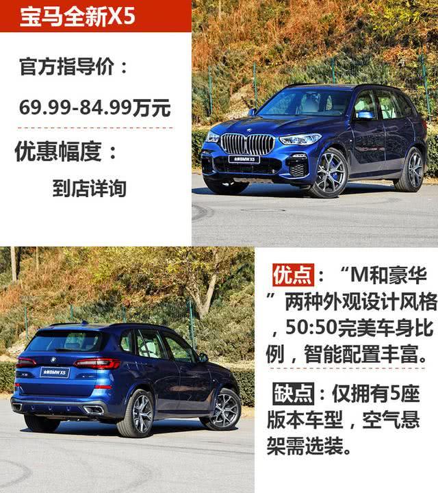 宝马全新X5是我个人非常喜欢的一款豪华中大型SUV,之前我们拿过一辆试驾车,对其有过很长一段时间亲密接触。实话实说,虽然与上一代X5相比,乘坐舒适度有所提升,但后排座椅乘坐质感仍略感偏硬,其余挑不出任何毛病。如果你更加喜欢追求运动性能,那么宝马全新X5会非常适合你。