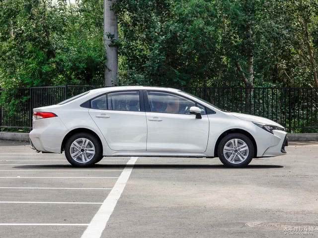 雷凌的侧面造型简洁利落,有种俯冲的姿态,让人一眼就顿生好感。尺寸方面,雷凌车长4640mm、轴距2700mm,属于标准的A级轿车身材。
