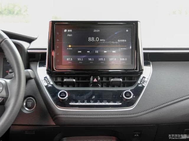 雷凌的内部配置覆盖率也相当高,比如9英寸的中控触摸屏、四车门车窗一键升降、倒车影像、无钥匙进入/启动等配置,很多合资车型往往在高配甚至顶配上才有。而雷凌则是除最低配外都有,或是直接全系标配。