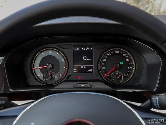 三辐式多功能方向盘握感饱满,按键罗辑清晰,音量键调节方式需要适应。仪表盘并非采用全液晶显示,而是中间采用7英寸液晶屏显示,两边为固定表显,不过这个7英寸液晶显示屏是高配车型专属。