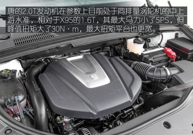 为了适配国六排放,比亚迪小幅下调了唐的引擎输出,此前的国五车型的引擎最大功率达到151kW(205PS),大了10kW(13PS),峰值扭矩与国六车型一致为320N·m。实际动力表现,国五/国六排放的唐不会有明显差别,而X95 1.6T的动力也与唐基本处在同一水平线。不到200PS的马力驱动超过1.8吨的中型SUV,自然不会有太多激情,但也足够让车辆达到轻快、好开的状态,应对多人长途出行,也是绰绰有余。